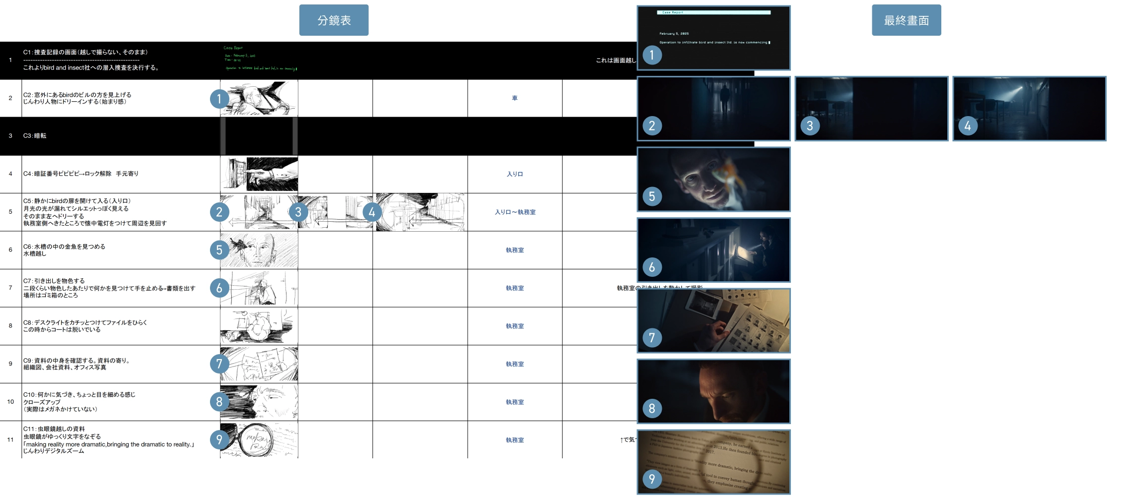 一位偵探潛入 bird and insect 神秘組織進行秘密調查,最後卻發現自己…在不到 4 分鐘的影片中,用影像說了一個故事中的故事,讓人大吃一驚。影片希望能傳達 bird and insect 的願景「create culture」,同時探索他們的使命——「讓真實成為戲劇,讓戲劇成為真實。」—的世界觀。