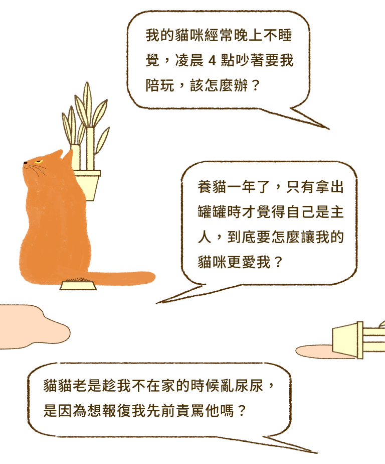 感到欣慰之餘,我更看見國內貓咪行為諮詢領域的侷限,從此以破解大眾對貓的迷思為使命,成為專攻貓行為諮詢的獸醫師,我想告訴大家,貓不是神秘、孤僻或難搞,只是你並不理解他。在多年的臨床諮詢經驗中,我更深刻地體悟到,貓行為問題其實大多來自於「人」,每隻個性截然不同的貓咪都有著相同的邏輯天性,但是飼主慣於以主觀的角度解讀,導致傷害一再產生,不僅生活品質低落,也失去照料彼此的信心。反之,當你嘗試以貓的邏輯了解他的需求,你會發現這隻不擅表達情緒的小毛團要求得並不多,而他最努力嘗試的,就是融化你的心。