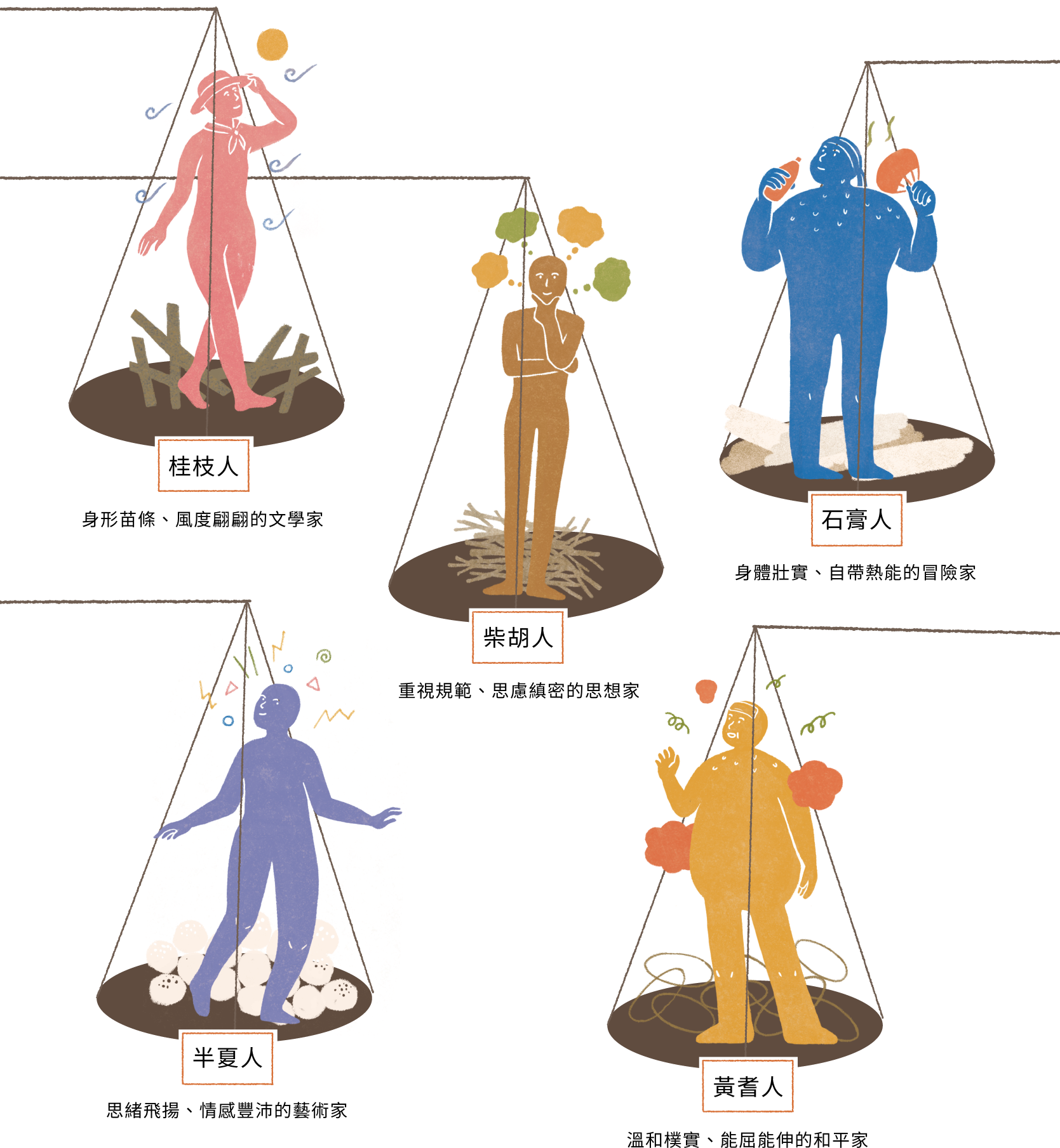 「類方體質」是指透過體型特徵、身體代謝、膚色、行為模式等身心指標,按照其適合的藥材種類進行體質劃分。同時面對相同疾病時,不同類方體質也會有不同的反應機制。