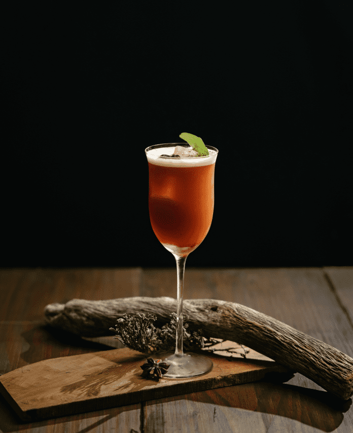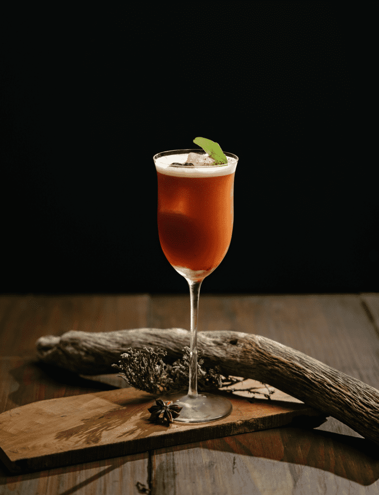 檀香是亞洲人很熟悉的一個味道,沈穩的香氣夾帶一絲溫暖氣息。在這杯「檀香酸酒」中,我會分享如何運用東方香料及甜味去拼接香味,並加入適當的酸以提亮口感,最後以苦味延伸風味層次。「檀香酸酒」取檀香清淡的木質香氣,與酸、甜、苦的味覺架構相互輝映,在你品飲的過程中如一縷輕煙陣陣飄逸。