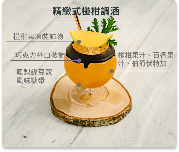 從上一章節的 14 杯家庭式調酒選出 6 杯,運用更多提升精緻度的技法以及更特別的風味發想,改造成專業級調酒。