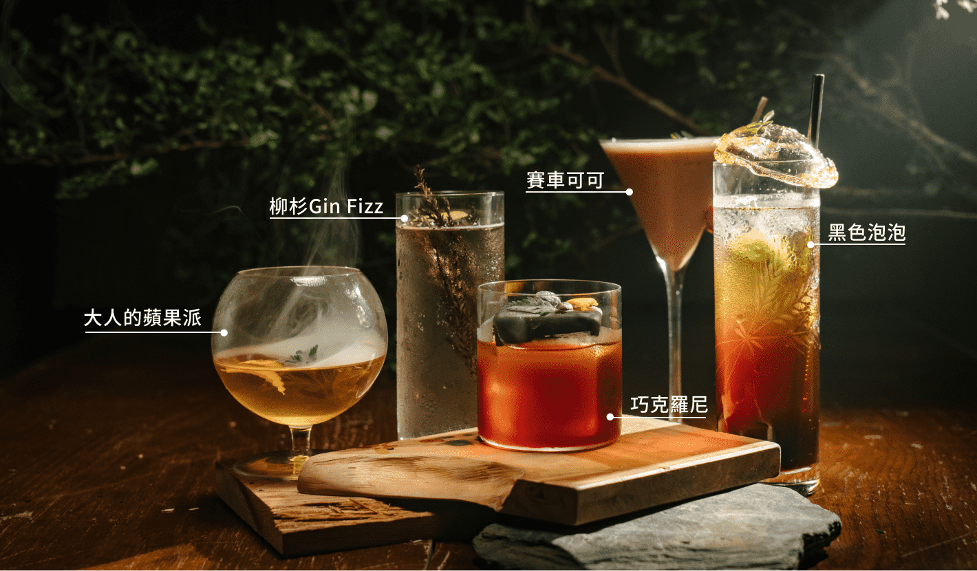 每一天走進店裡 ,是先找個位子坐下翻翻自己的筆記本,思考最近生活中有什麼新的題材、新的內容可以放入酒中。調酒的世界變化萬千,一杯杯精彩動人的創意並非憑空出現,而是在於日常點滴的積累。2022 年,規劃好了新的酒譜,準備向海明威等幾位大文豪致敬,然而疫情的衝擊如一記重拳打亂了這些計畫,於是我選擇讓一切歸零,走入山林讓自己靜心。這一趟旅程讓我看見,原來一草一木都是大地的獻禮;土壤不只孕育萬物的生長,更有可以放進酒杯裡的絕妙風味。於是,我向山借了許多元素帶回店裡。