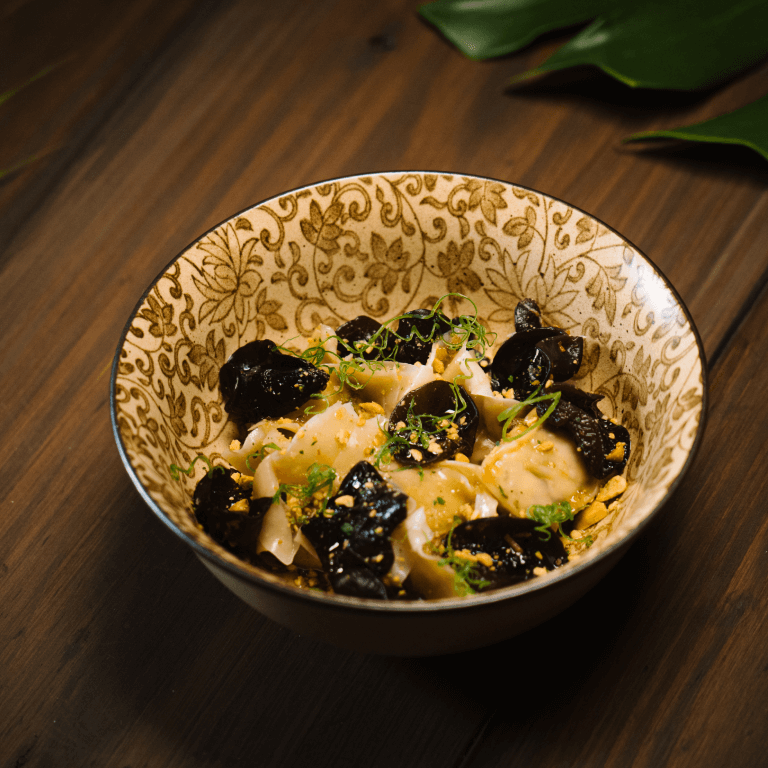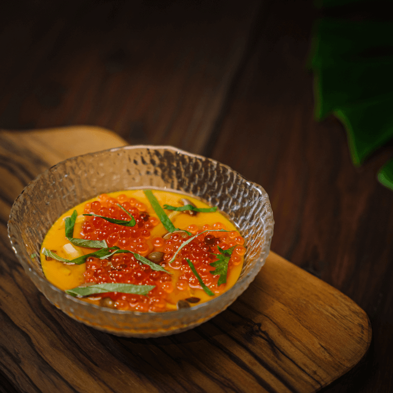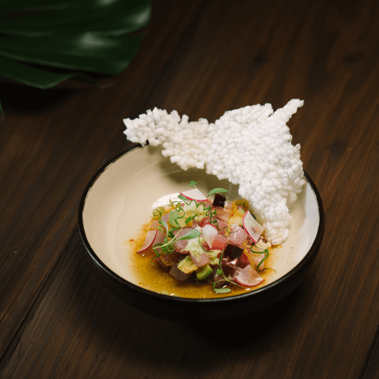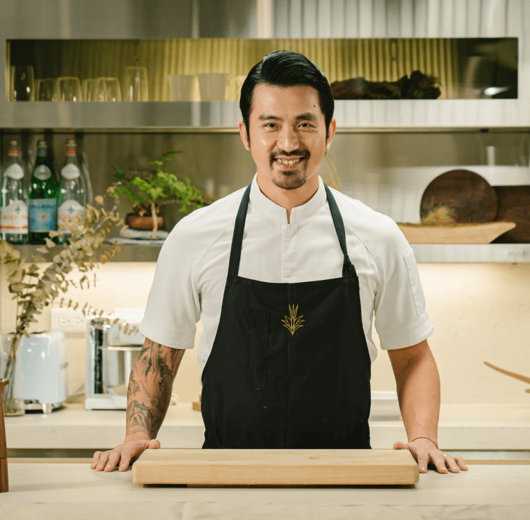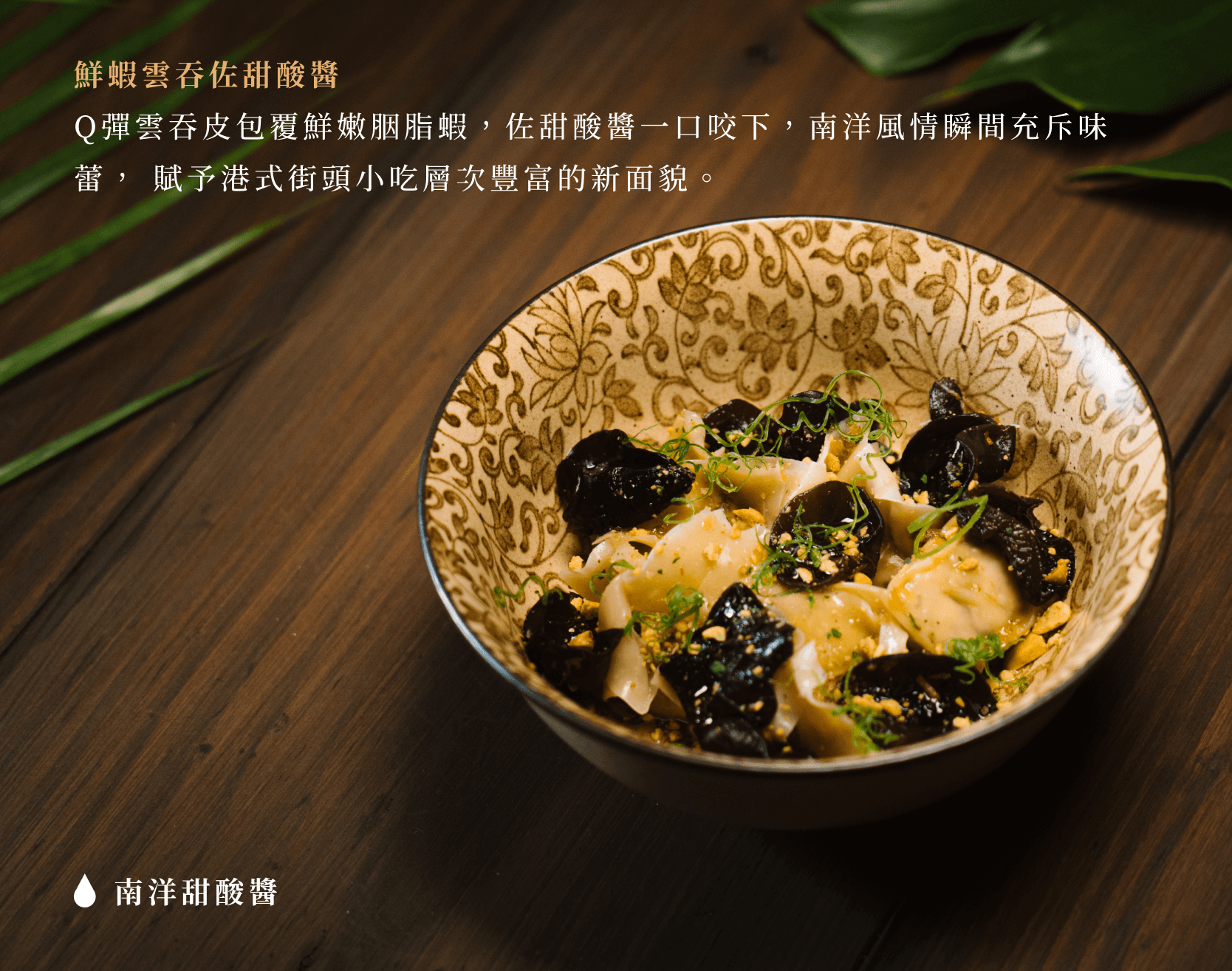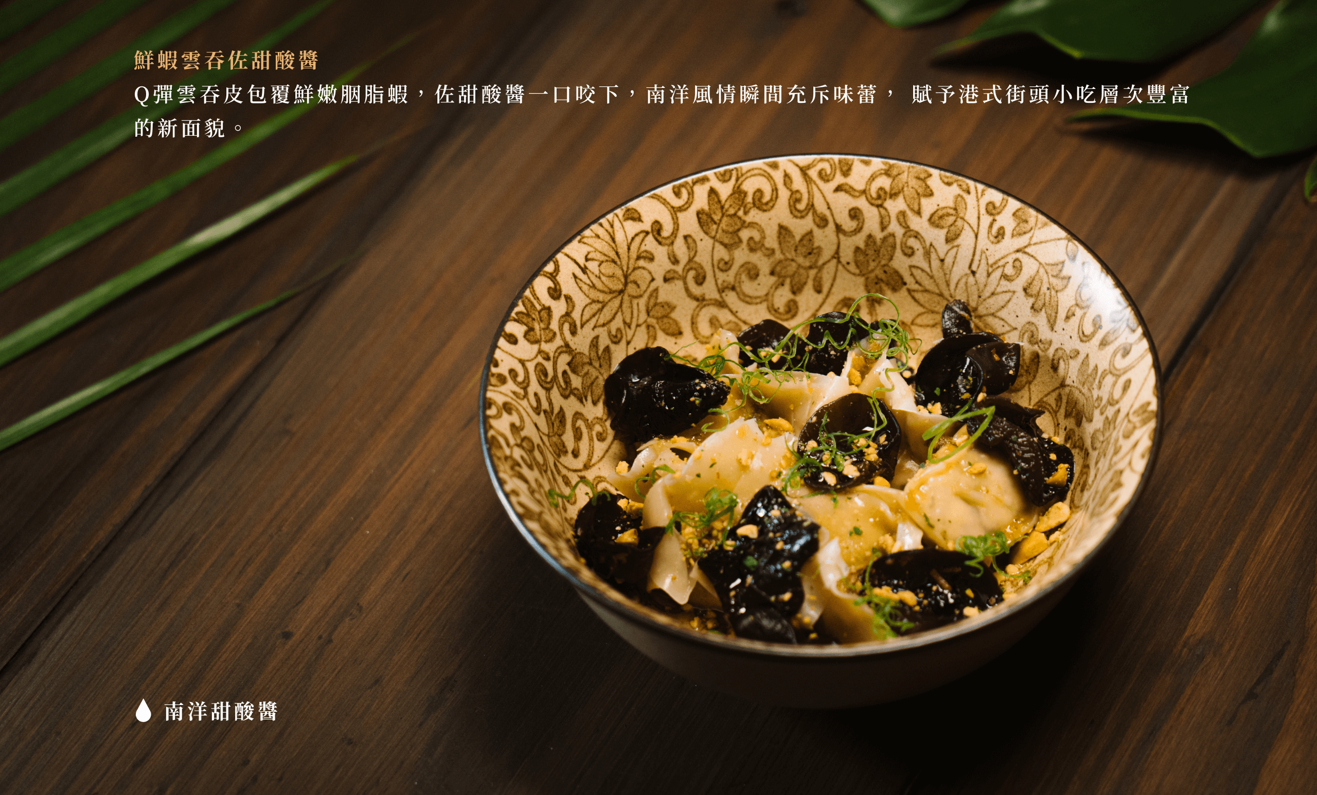 就像一艘長尾船,航行於亞洲各地區域的飲食文化之間,透過我的創作料理,融入各地遊歷的生活經驗和舌尖體驗,展現出國際視野的異國風味,亦猶如飛翔的藍鵲,將多變的亞洲風情與美味傳遞至客人的味蕾。