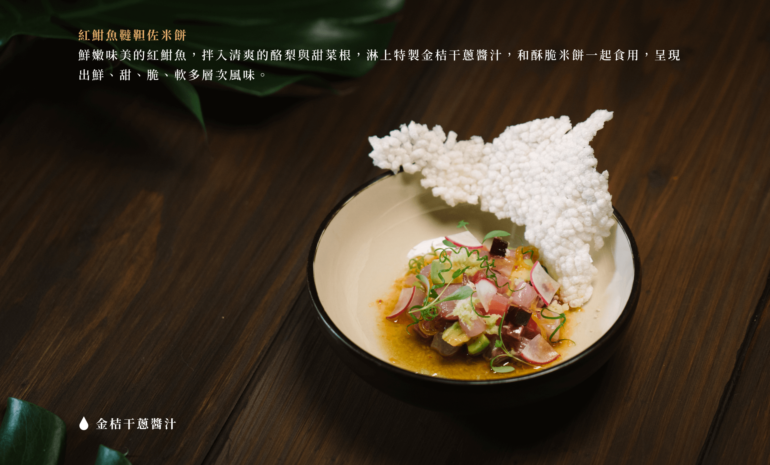從香港的蘭桂坊,到巴黎、紐約、上海的米其林星級名店,不同的城市帶給我豐盛的餐飲洗禮,讓我的料理融合跨界特色,而我最後選擇台灣這塊土地成為實踐理念的地方,「食材」是最牽引我的原因。台灣物產豐盛,產地和餐廳只要 2-3 個小時的車程就能抵達,在這裏,能夠擁有最新鮮的海產、多樣化的水果、以及獨門的香料,這些大自然給予的豐厚物產,讓人與土地、食材與土地有著最緊密的關係。