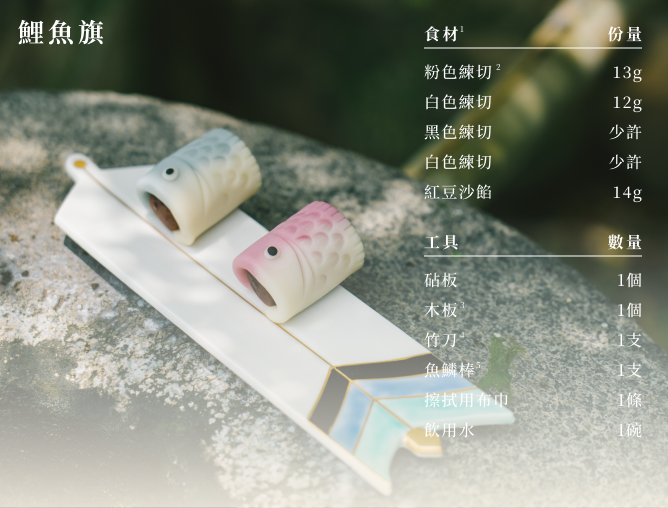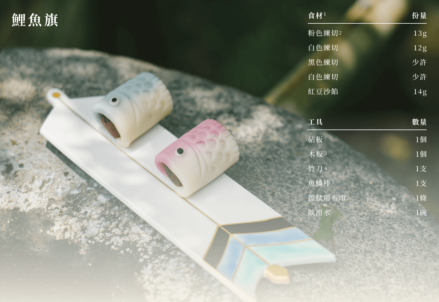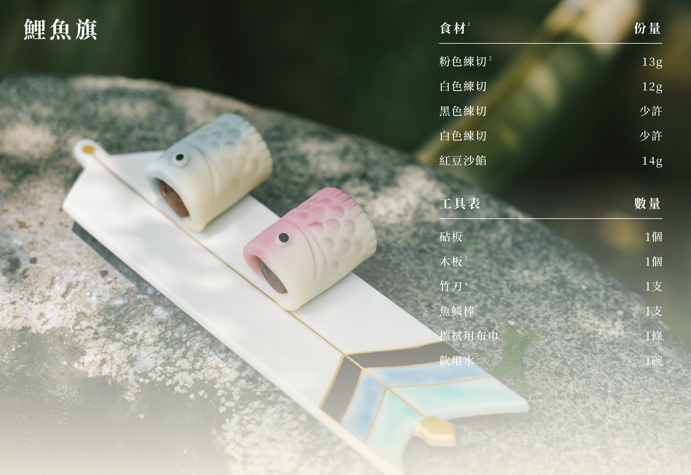 在這門課程中,我們以「練切」上生菓子作為教學重點,而練切的製作邏輯其實很單純,每一顆雖造型獨特,但內餡與外皮都是以白豆沙為主食材,換句話說,你只需要準備好一套食材,就能變化出課程教學的 24 款和菓子。