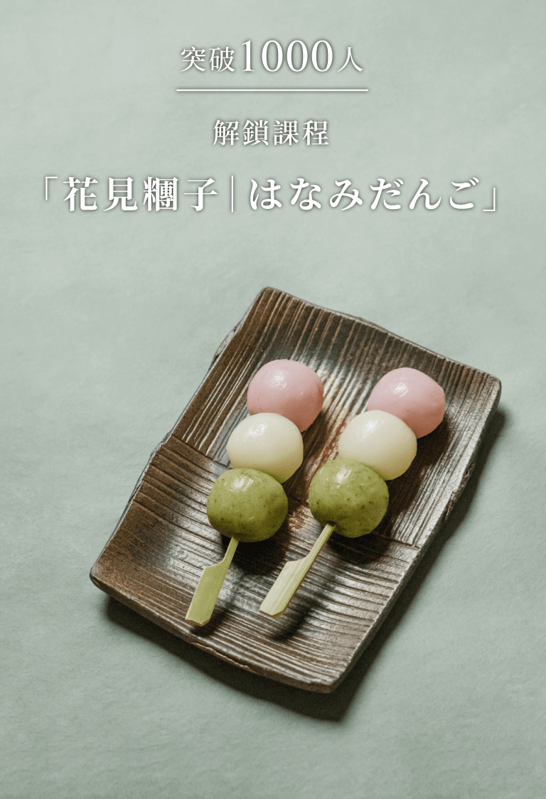 每年櫻花季,我都會製作這款點心帶去賞櫻!這也是我店裡極受歡迎的品項,我嚴選上新粉作為主要原料,讓糰子Q彈的口感更加細緻,並特別加入鹽漬櫻花、日本艾草,讓豐富的風味層次迸發在彈牙的口感間,成就我心中經典美味的和菓子。