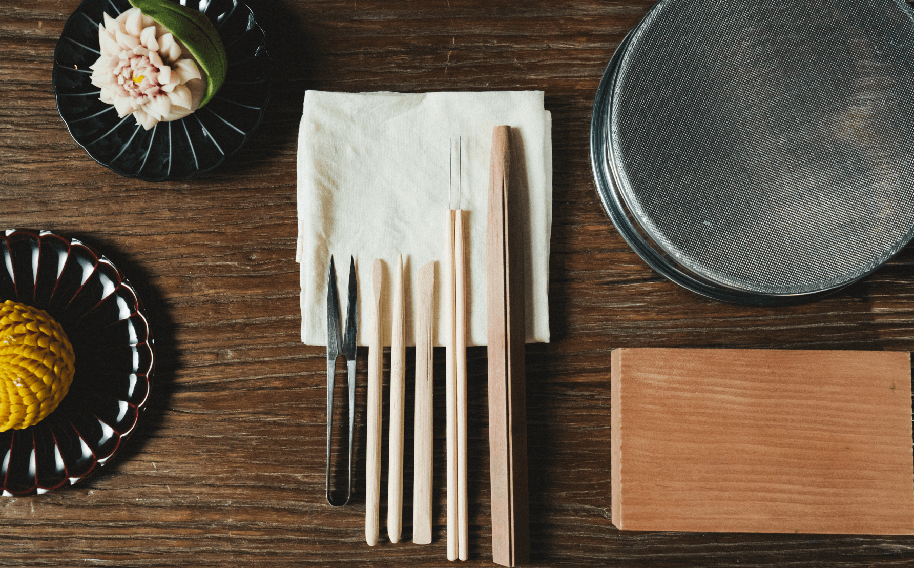 每一位和菓子師傅,都有自己專屬的一套工具,發揮手作精神,以木工、金工製作出獨特的塑形工具,以便為你的和菓子賦予更獨特且精緻細膩的造型。