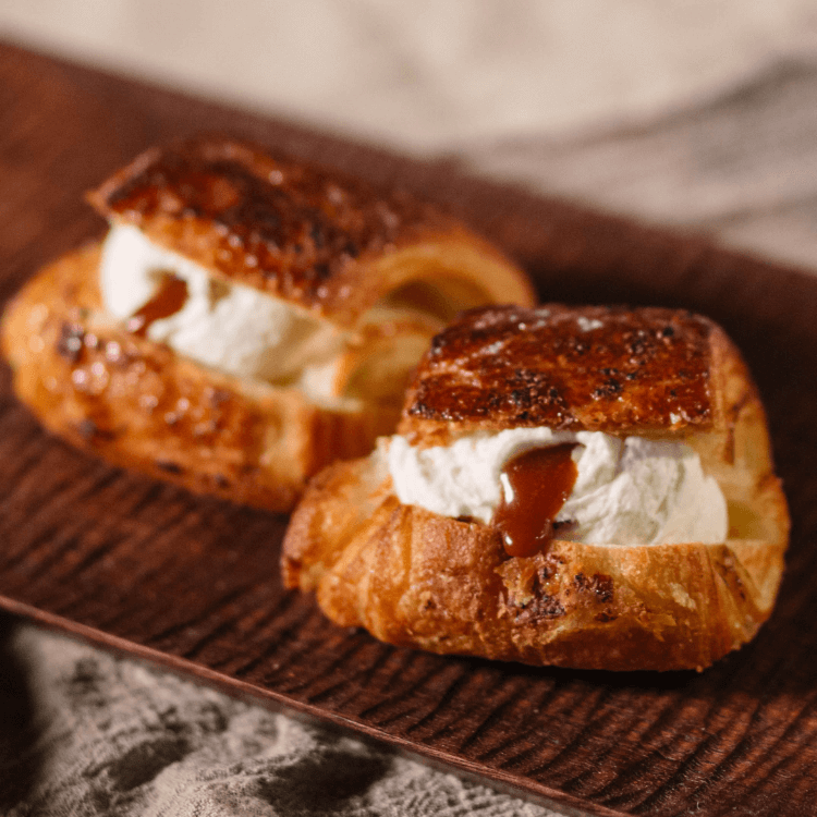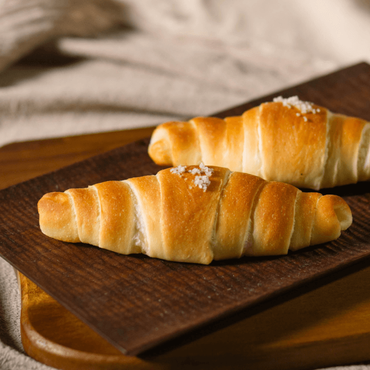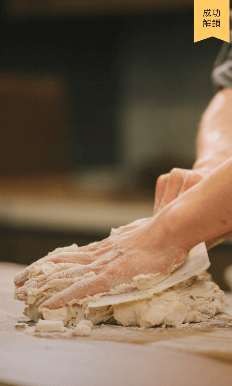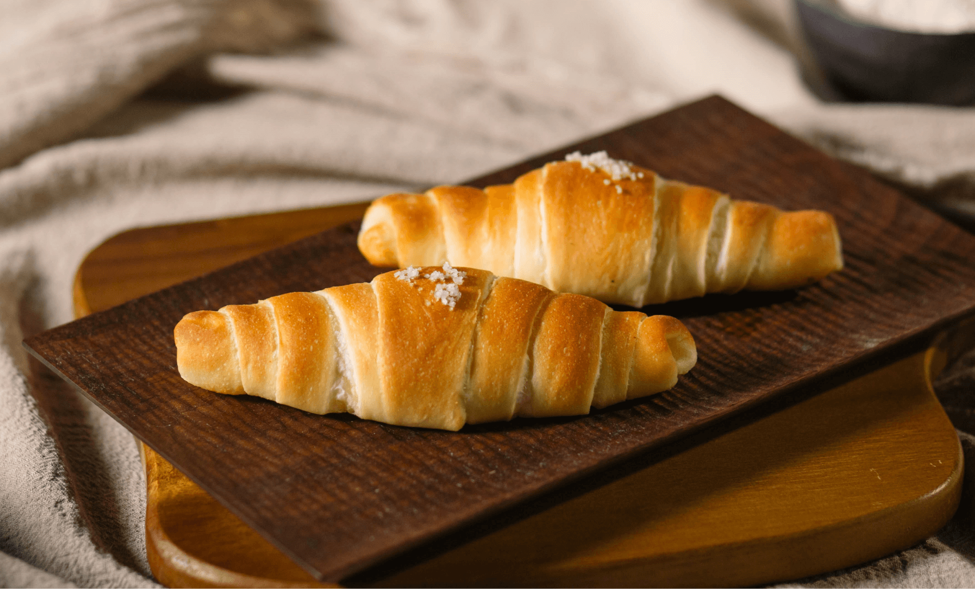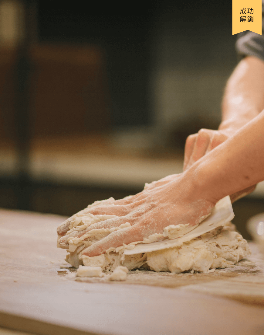 而生可頌,則是我延續生吐司的概念所研發的獨特品項,與一般可頌較酥脆的油層相比,在口感上更加鬆軟、更好咀嚼,卻仍舊保有豐富的麵皮層次;不會因為接觸空氣時間過久,造成表皮太脆、太硬。我研發新配方並融合獨特的包油折疊方法,降低對麵團、奶油軟硬程度和溫度控制的要求,新手一定能在家裡毫無壓力地輕鬆嘗試。