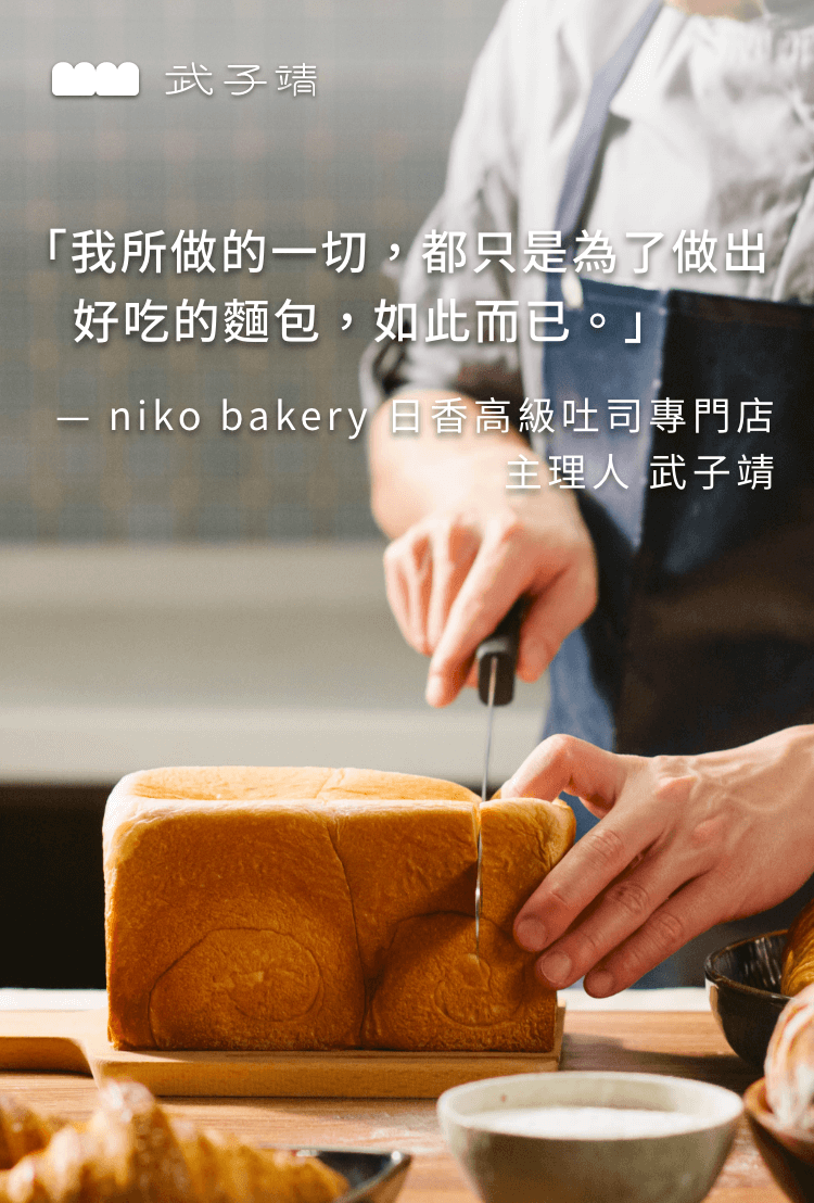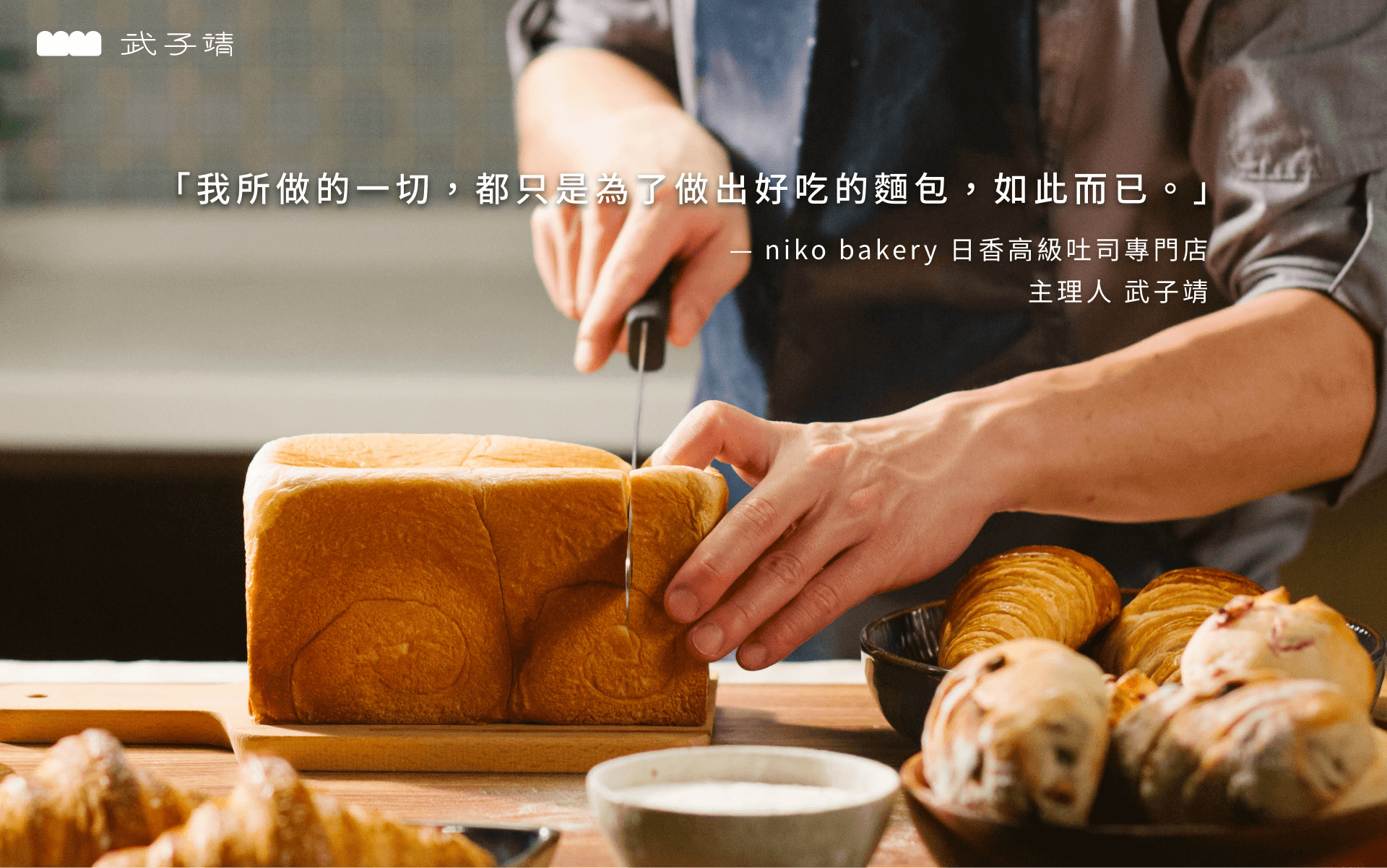 我和富錦樹集團的創辦人吳羽傑,歷經了 2 年以上的研發,製作出這款能帶給餐桌上幸福與溫暖的生吐司,希望讓人一吃便能露出微笑。因此取名為「日香」,其日文發音「niko」 更有著微笑之意。