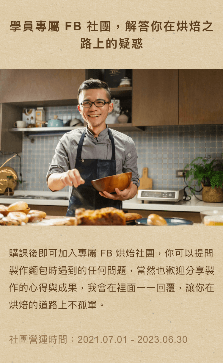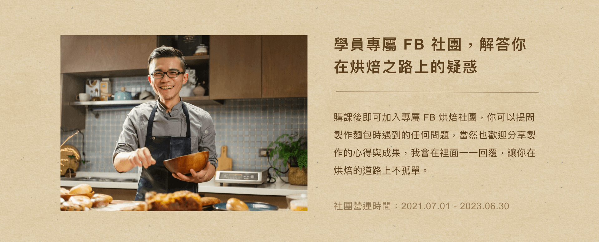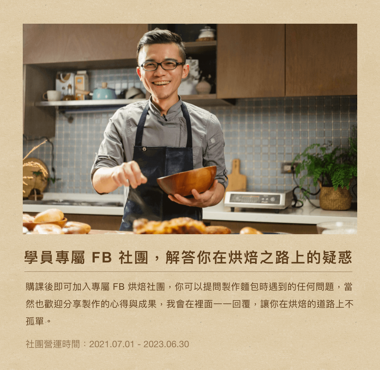 在這門課程裡,每一款麵包只要用不到 200 元的價格,就能學習到我的技法與配方。絕對比一般坊間實體課程甚至是網路課程還要物超所值。重點是,我相信我的麵包是經過市場驗證的好吃!