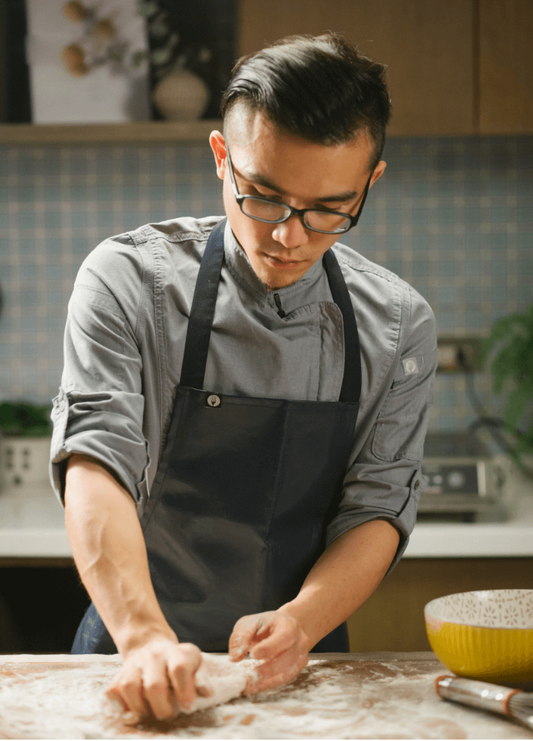 我接觸烘焙將近 20 年,除了持續研發新的麵包款式之外,我花最多的時間就是在教學。這些年下來,我在台灣的開課都是場場爆滿。同時我自己也開過三家店,帶過許多麵包學徒們,手把手教他們相關的知識與技巧。更多次受邀去泰國、馬來西亞、中國、印尼等地開辦麵包課程。所以在教學方面我十分有經驗,我知道大家在哪裡學習會有瓶頸,用什麼樣的詞彙跟語言描述給你們聽,大家才會聽得懂,更重要的是我會把很多小細節都放在課程裡面,告訴大家可以如何規劃好時間,就能做出好吃的麵包。相信新手也能輕鬆掌握這些訣竅。