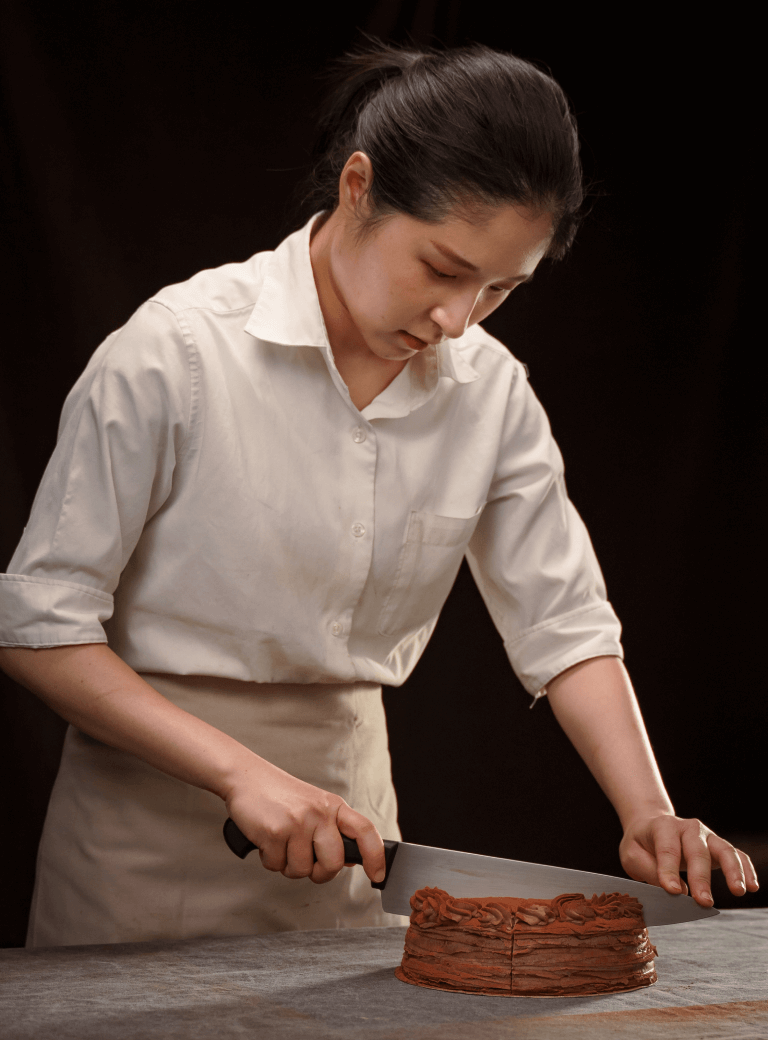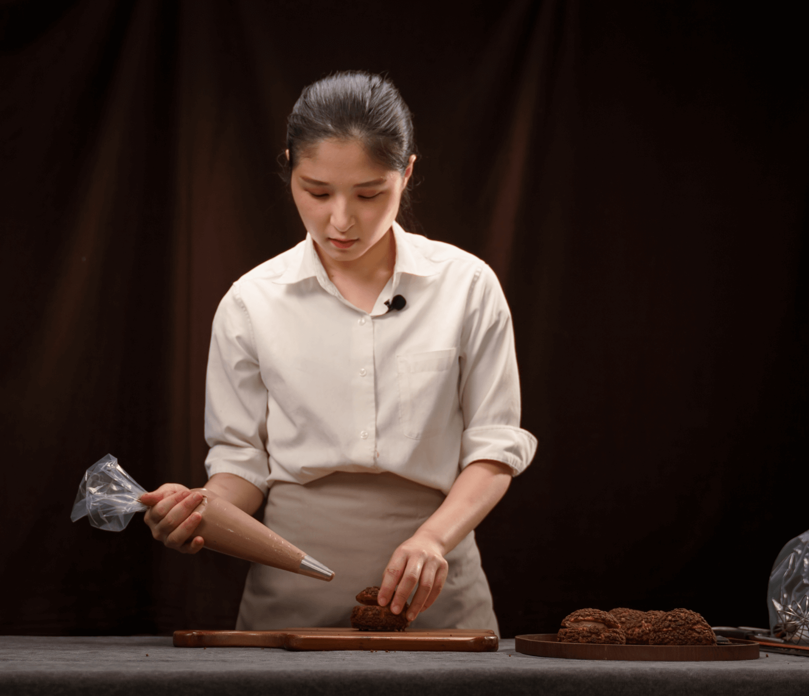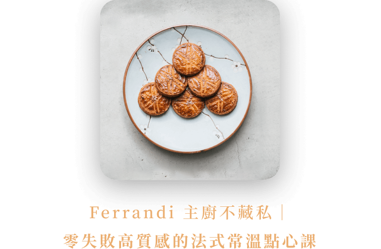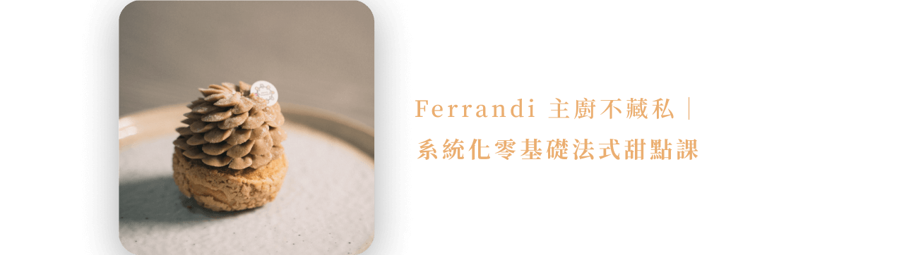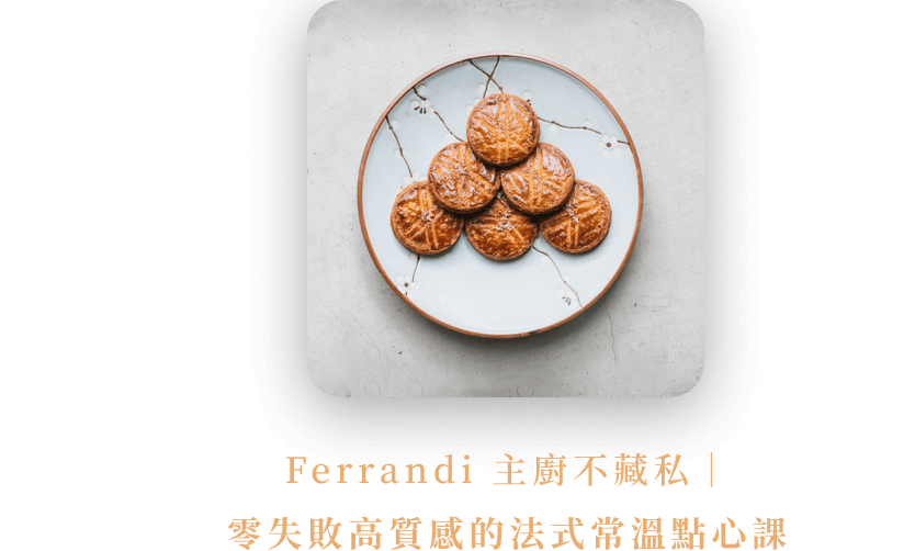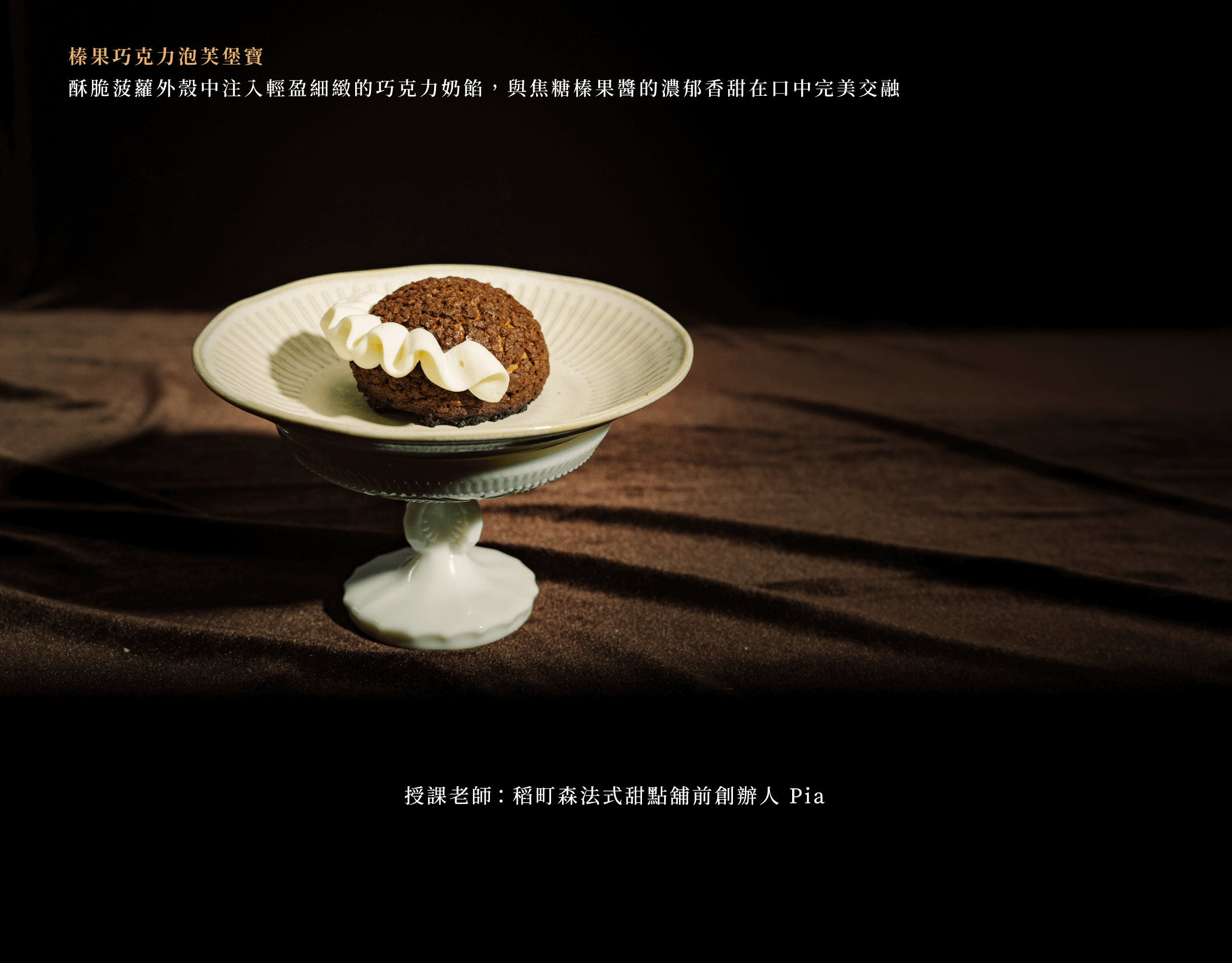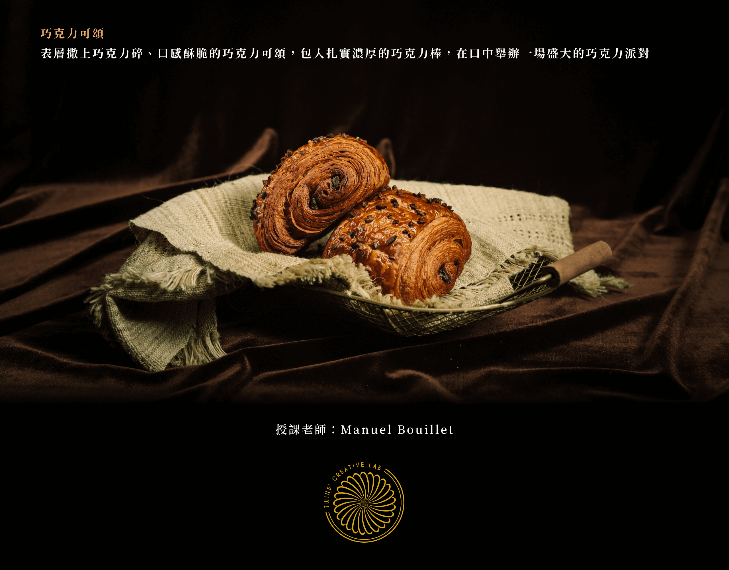 這次課程精選了「巧克力」、「巧克力麵包」與「巧克力甜點」三大類別,共計 11 種巧克力應用品項,分別包含松露巧克力、兩款維也納系列麵包:布里歐許、可頌,巧克力甜點則涵蓋餅乾、泡芙、塔、可麗餅千層、夏洛特蛋糕、鏡面蛋糕、樹幹蛋糕與調溫飾片,你可以完整學會巧克力在法式甜點中的核心技法與應用!