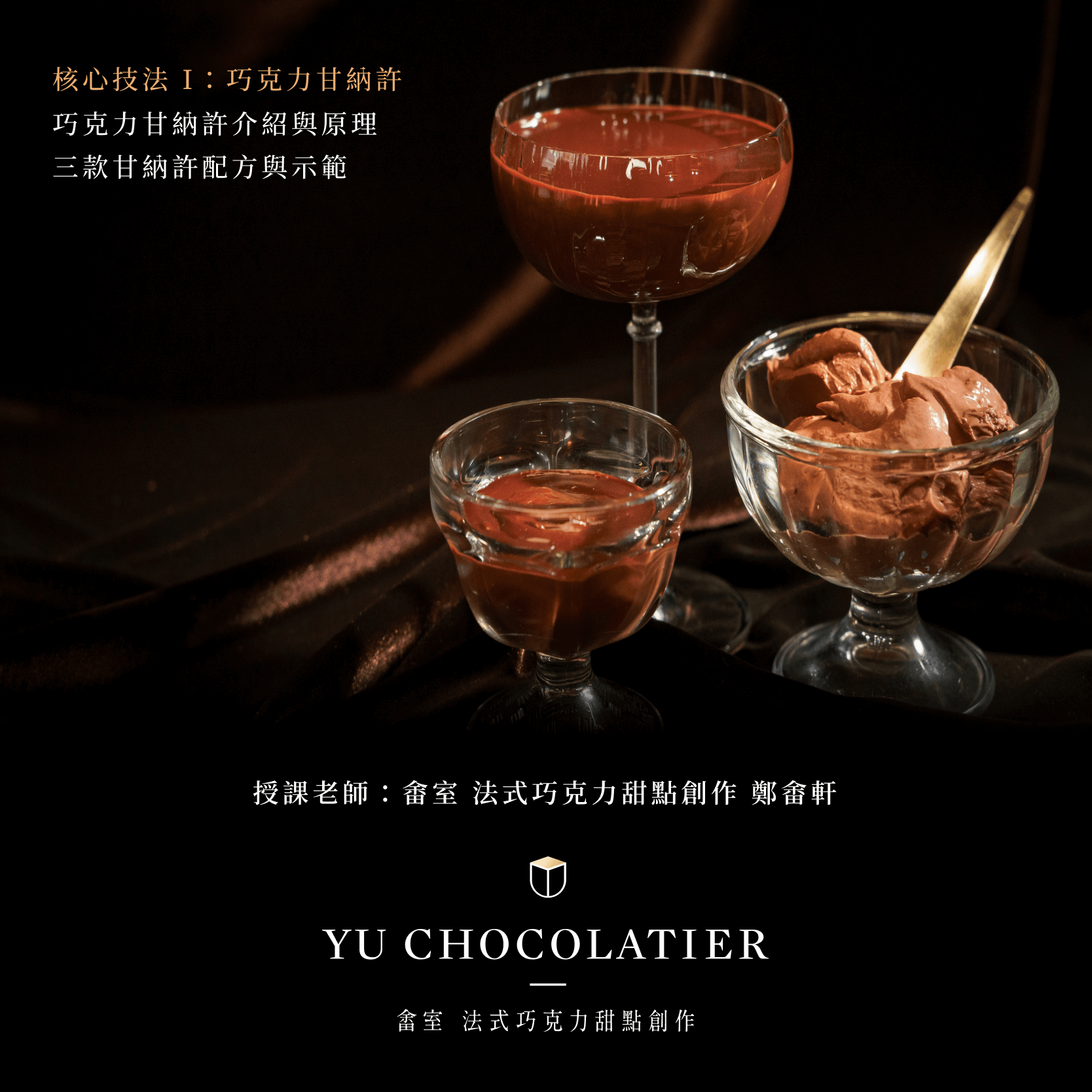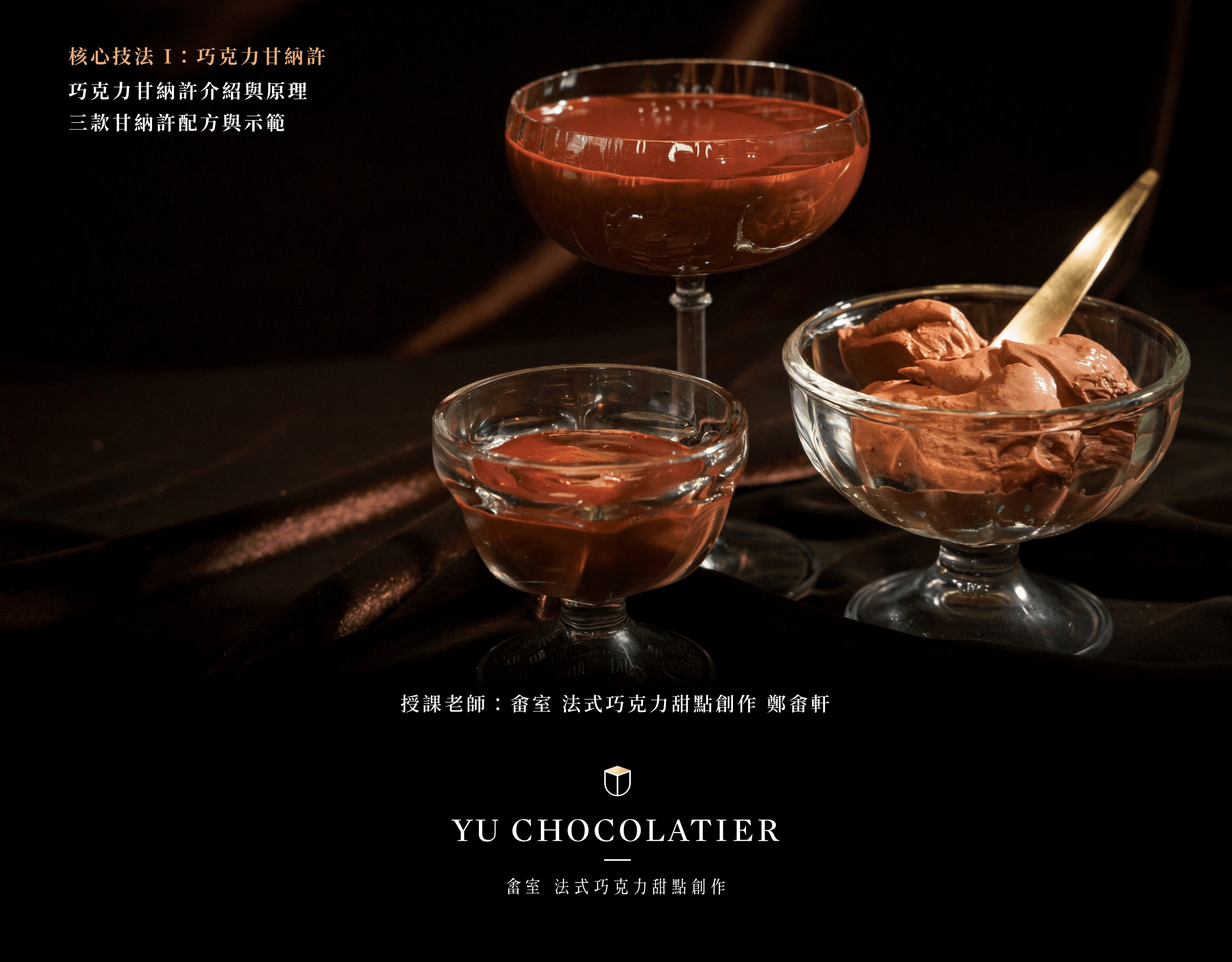 以 bonbon 夾心巧克力獲得世界巧克力大賽(ICA)獎項,以及參與 Salon du Chocolat PARIS 法國巴黎巧克力大展的第一個臺灣品牌——畬室的畬軒主廚,會在課程中為你們介紹 bonbon 中最關鍵的角色,同時也是巧克力在法式甜點中最基礎、最廣泛的運用——巧克力甘納許。