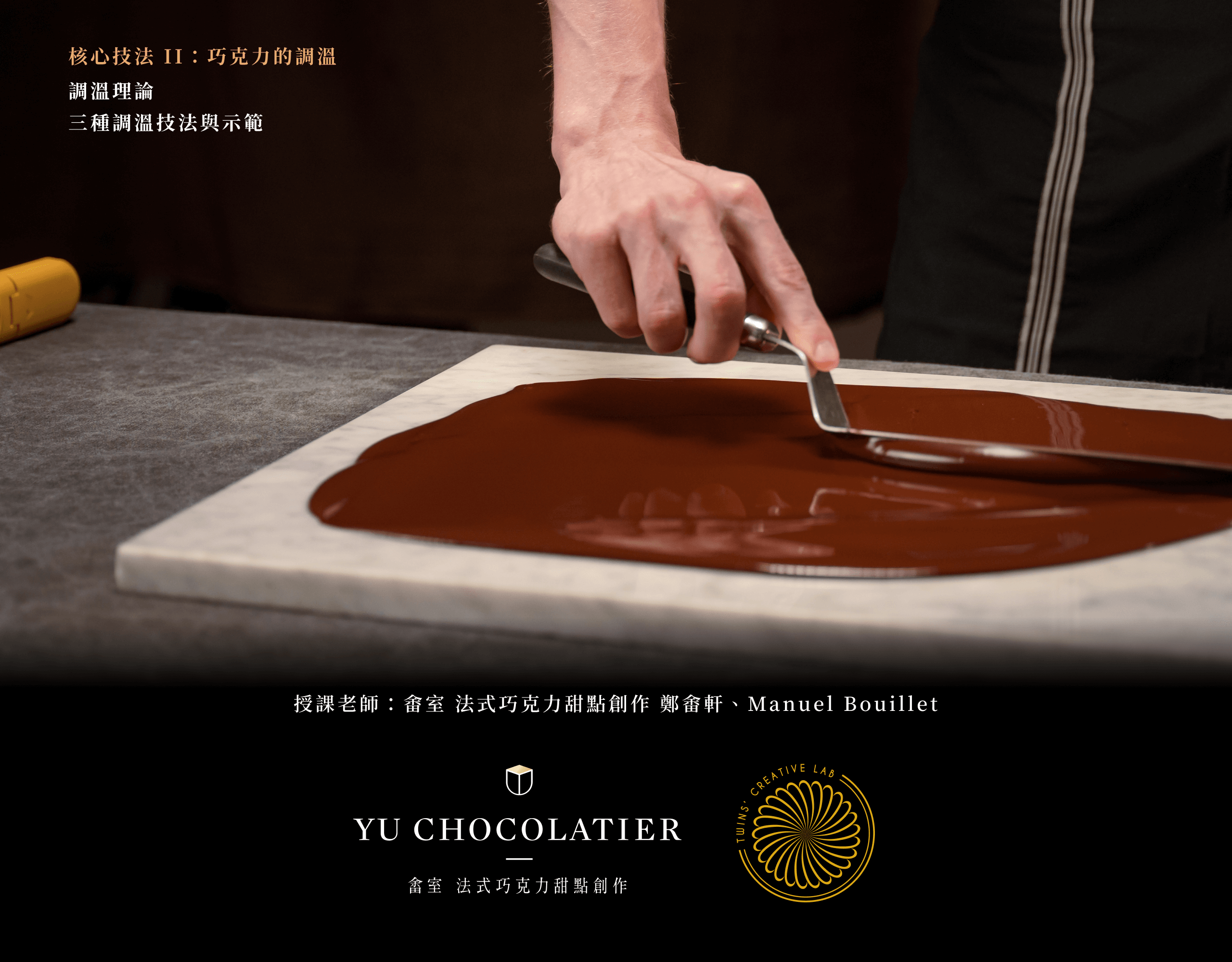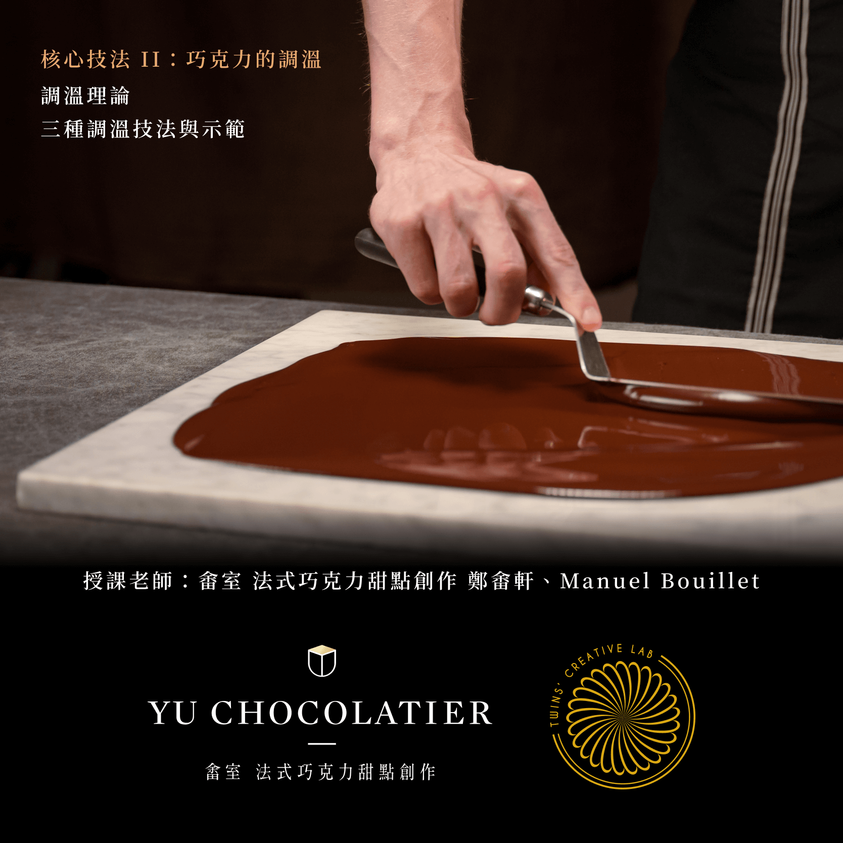 在這門課程中,我和兩位主廚會有系統地帶你們認識巧克力的不同面向,畬室的畬軒主廚會和你分享他研究巧克力十餘年來,對巧克力的認識與風味理解;曾為世界知名巧克力品牌 Cacao Barry 技術顧問的法國主廚 Manuel 會教你三種巧克力調溫技法、巧克力飾片的製作,及他獨門研發的兩款巧克力維也納麵包;我則會向你們示範巧克力在各種法式甜點中的多變運用,陪伴你們一步步打好巧克力甜點實作的扎實基礎。跟著我們,你能夠完整而有脈絡地建構巧克力的基礎知識、核心技法與實作練習!