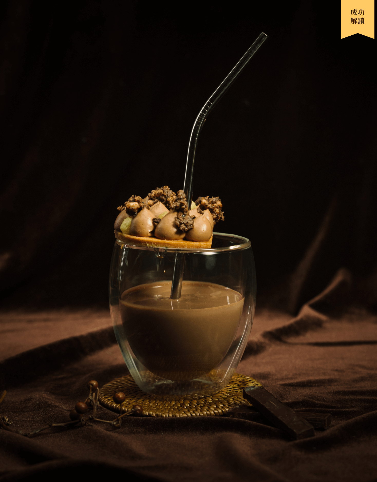 這堂解鎖課程, Manuel 主廚會不藏私分享一款創意巧克力飲品的概念與食譜,除了巧克力與牛奶完美融合的濃醇順口以外,更加入了小小的巧思,在杯口放上由巧克力甘納許、巧克力脆片、鳳梨果凝堆疊交織而成的法式塔型裝飾,讓你對冰巧克力飲品有了全新的想像與詮釋。