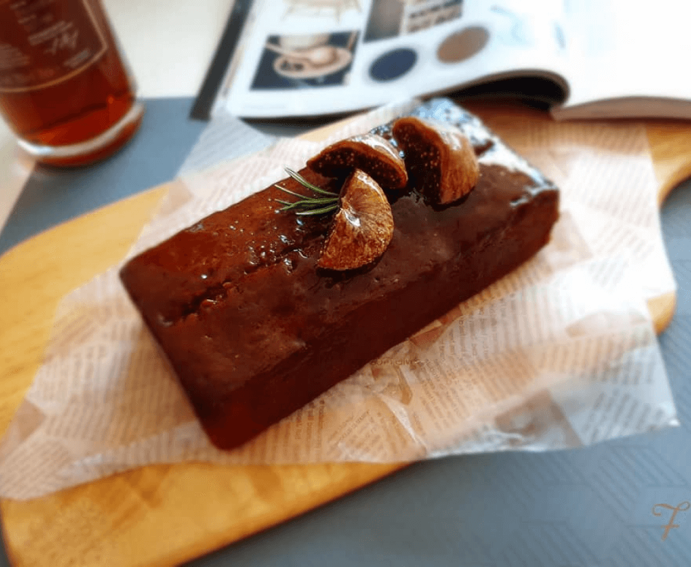 在家防疫交作業~ [威士忌無花果磅蛋糕] 印象中的酒類甜品不外乎是蘭姆 /香檳葡萄,或是烈酒巧克力之類的,用威士忌來做蛋糕還是頭一回,因而決定把這特別的蛋糕獻給從台灣帶回的KAVALAN solist 波特桶,邊做邊喝,香味實在迷人~! 微醺時製作總歸不是太順利,包括: 模具有些太大,沒看到焦糖醬只須用到食譜上的,不小心梭哈了全部。烤製過程用旋風165度,放烤盤/中層,但足足等了16分鐘才到可劃線的程度,再加35分鐘出爐。 等了一天,幸好口感和風味都是令人驚喜的。雖然我加入了過多焦糖醬有些過甜/濕潤,但還是一下就完食了三片。 在口中咀嚼時彷彿時空旅行,回到了宜蘭的威士忌釀酒廠,小小滿足了一點思鄉的念頭。