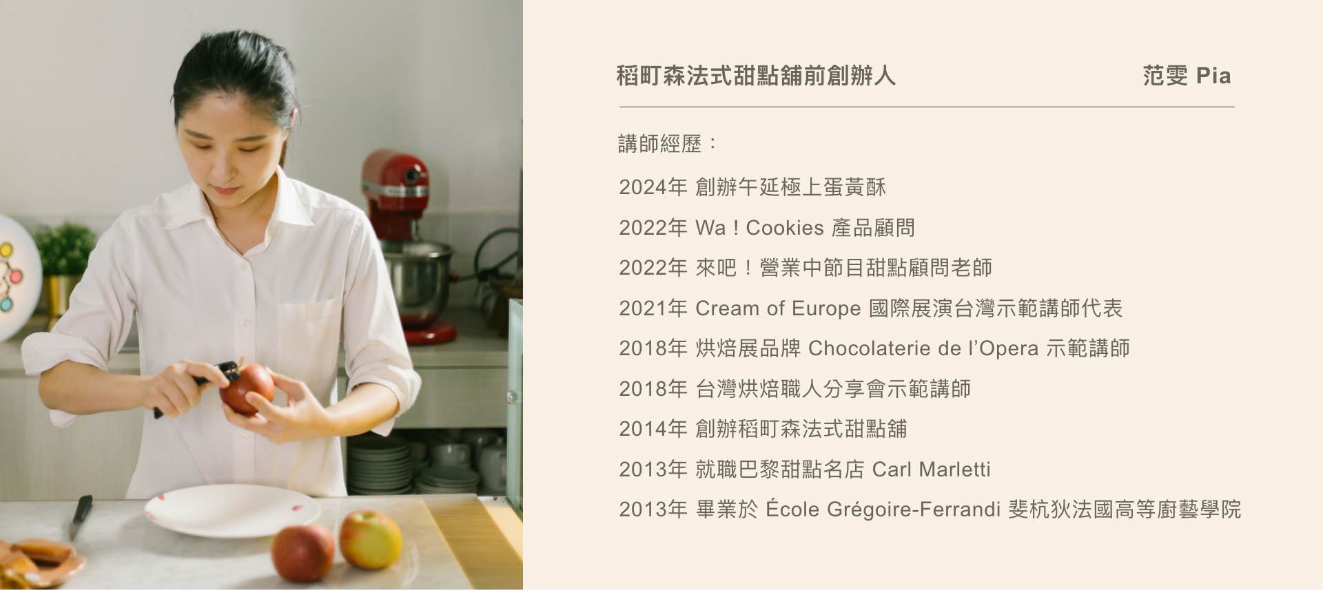 第一季課程,我抱著簡單的心念,想將自己當初學習甜點的路徑濃縮成一份完整的課程,幫助更多人減少學習上的困難與彎路。