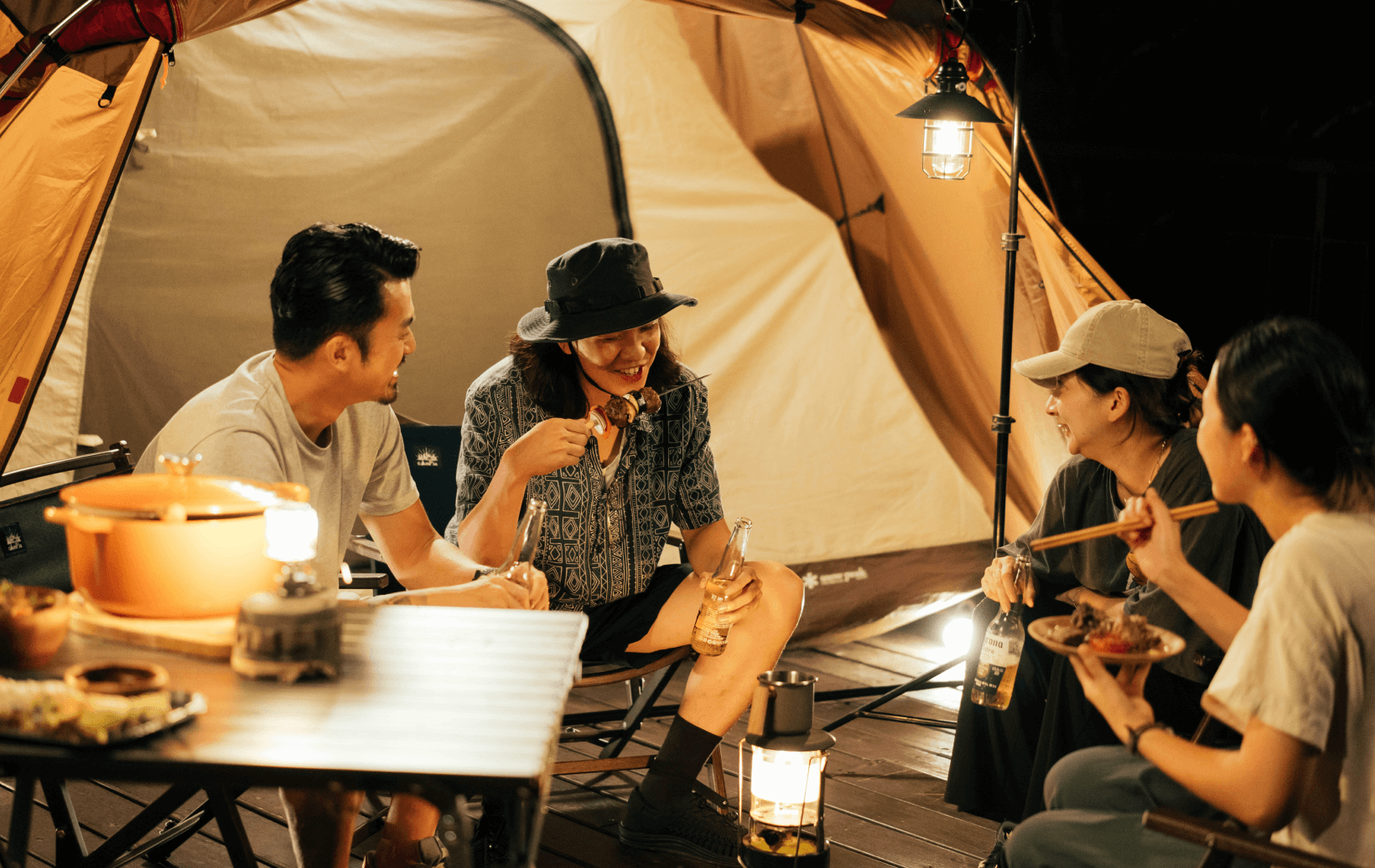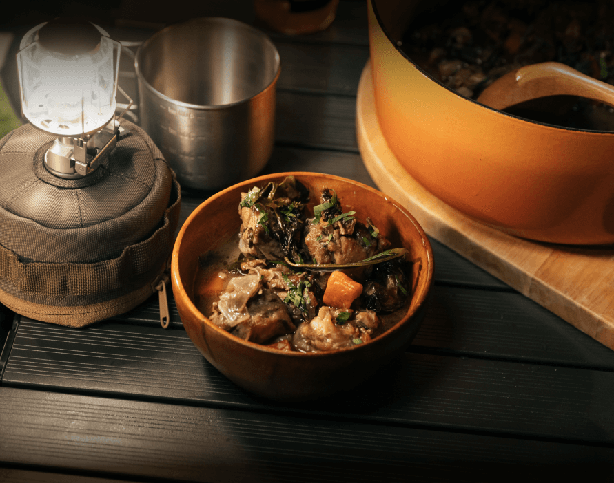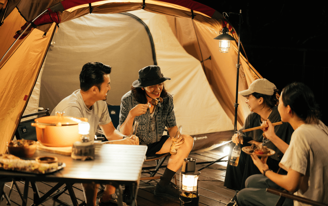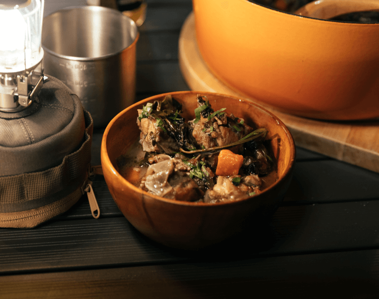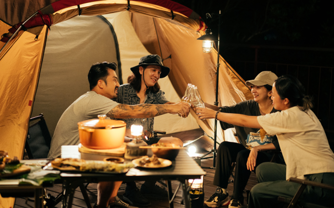 遠離城市喧囂,走入山林之間,與好朋友們圍著爐火享用料理,酒水一杯接一杯,伴著微醺的夜色與心情,享受與身邊的人全心全意共處的這一刻。