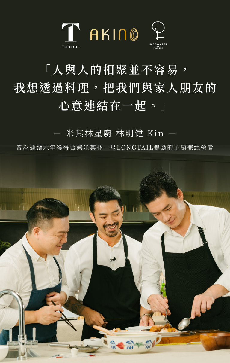 這些年來,多虧了我在台灣有許多朋友的幫忙與鼓勵,才有今天的林明健。我特別邀請我兩位好友,也是米其林星級主廚Kai和Paul,各自端出一道自己對於節慶有最深刻記憶的料理,從蛋餃與澄清雞湯、香草烤雞到我的家傳港式蘿蔔糕,通通分享給大家。