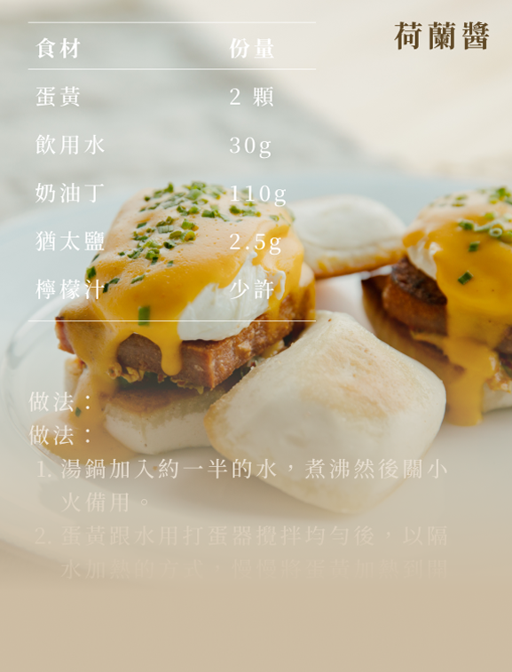 最重要的是,這次的菜單專門為不同的相聚場合而設計,因此也更貼近生活中各種情境的備餐需求,比如早上一起床,你可以先製作水波蛋和荷蘭醬,再從冰箱拿出常備的小饅頭和自製泡菜進行組裝,就完成豐盛的