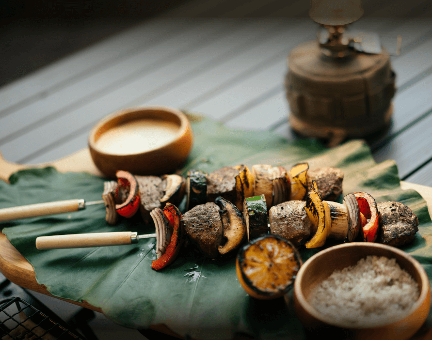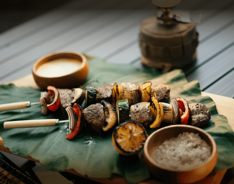 Brunch;露營前一晚,將肉串抹上自製的醃料,隔天就能簡單準備、快速上桌。不需要昂貴的食材、繁複的手法,你也能做出美味與視覺效果兼具的料理!